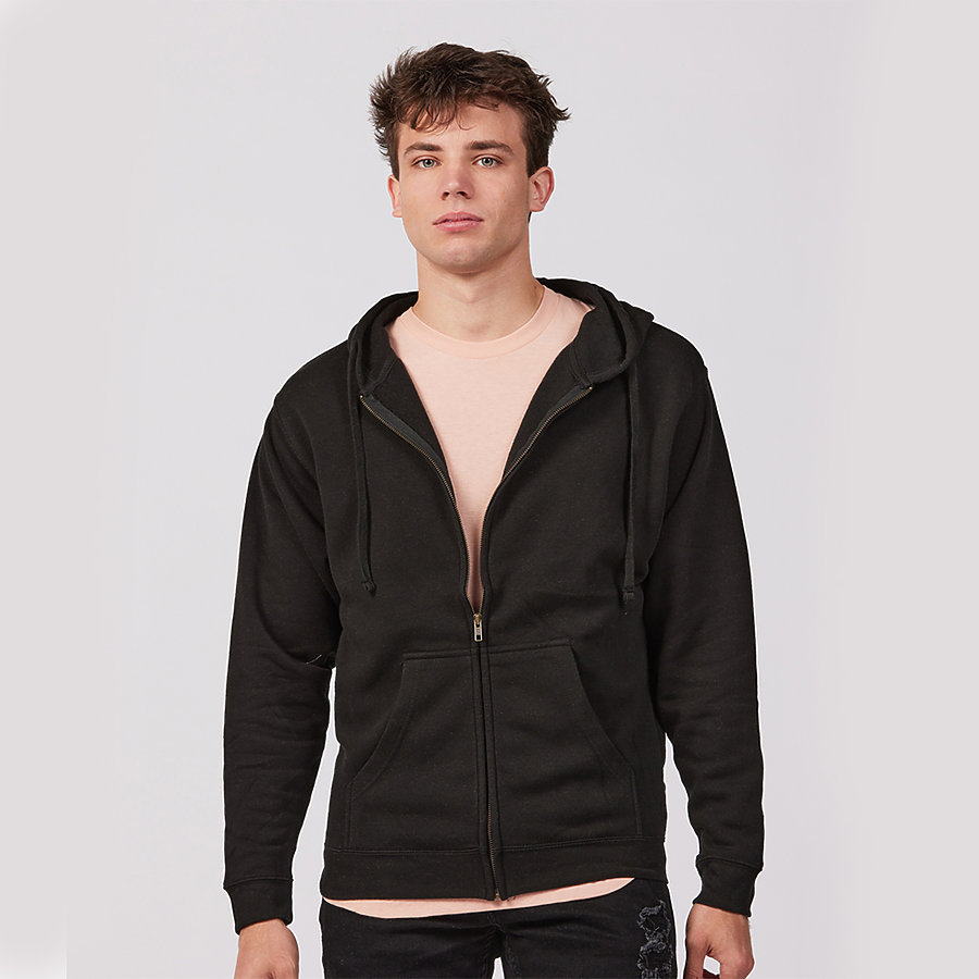 Unisex Premium Fleece Full-Zip Hooded Sweatshirt - Large, Black