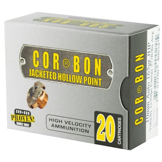 Corbon Ammo Self Defense, 10MM, 165 Grain, Jacketed Hollow Point, 20 Round Box 10165