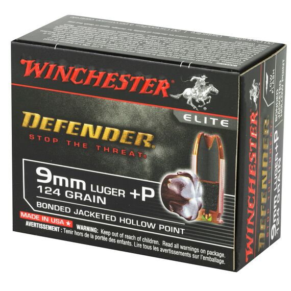 Winchester Ammunition Defender, 9MM +P, 124 Grain, PDX1, Bonded Jacketed Hollow Point, 20 Round Box S9MMPDB