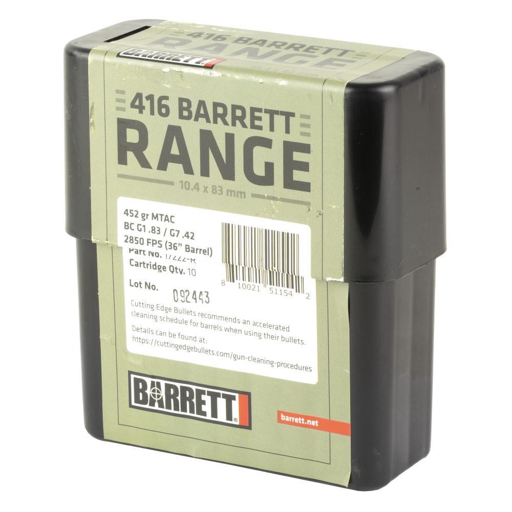 Barrett Ammo, 416 Barrett Range Ammo, 452 Grain, Boat tail Hollow Point, 10 Round Box 17222-R