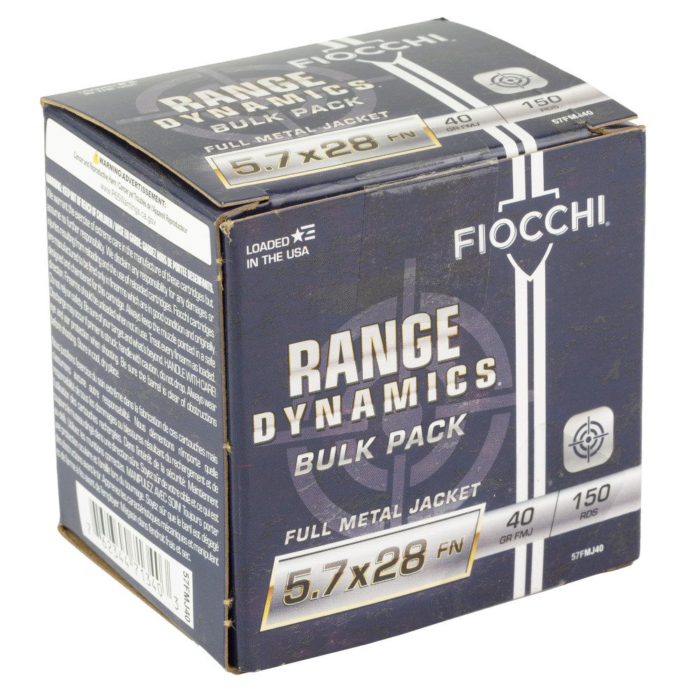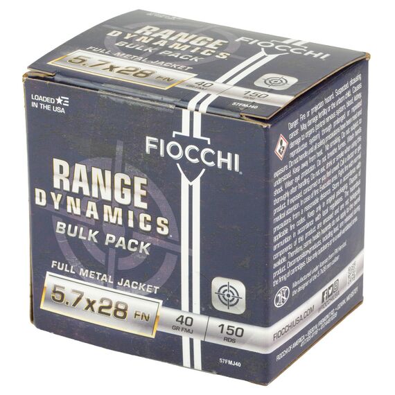 Fiocchi Ammunition Range Dynamics, 5.7X28MM, 40 Grain, Full Metal Jacket, 150 Round Box 57FMJ40