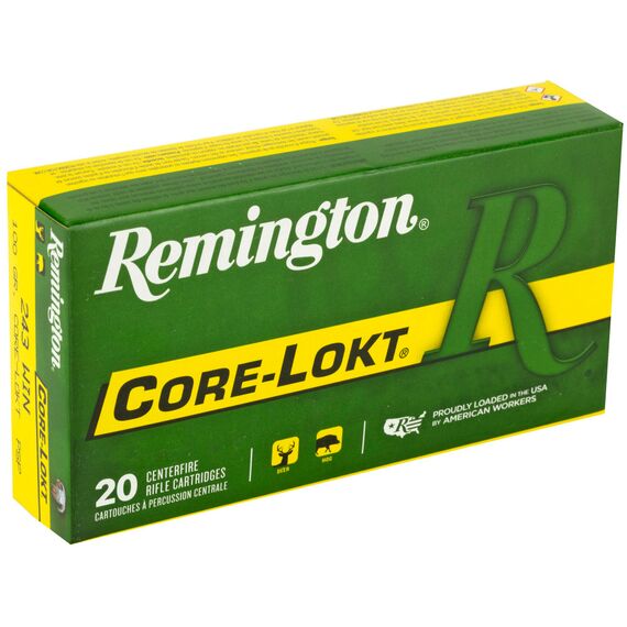 Remington Core Lokt, 243 Winchester, 100 Grain, Pointed Soft Point, 20 Round Box R27802