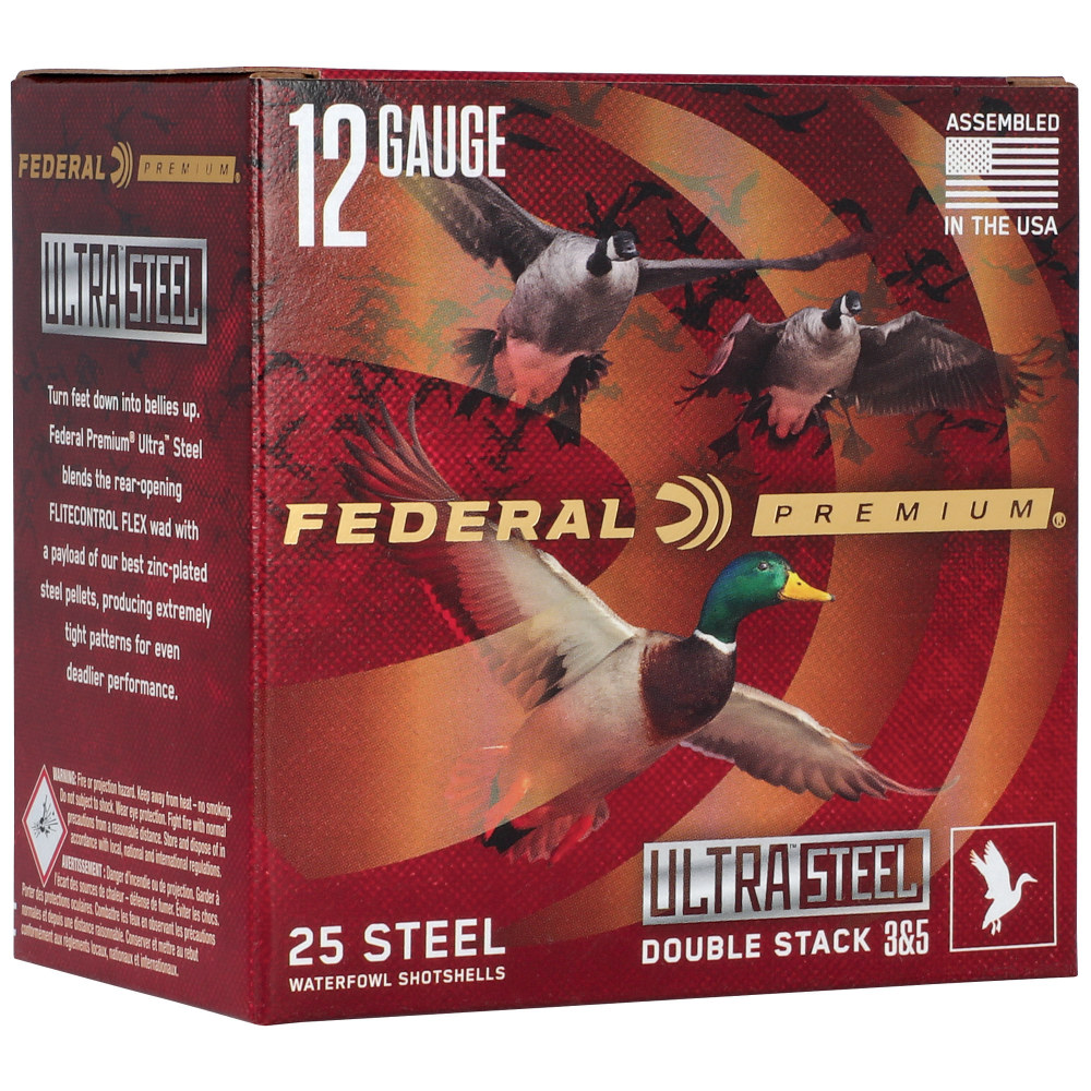Federal Ultra Steel, FLIGHTCONTROL FLEX WAD, 12 Gauge, 3", #3 and #5 Shot, 1 1/4 oz, Zinc Plated Steel, 25 Round Box PWUX142 35