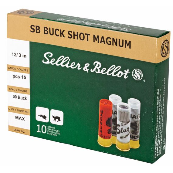 Sellier & Bellot Shotshell, 12 Gauge, 3", 00 Buck, 15 Pellets, 10 Round Box SB12BSA
