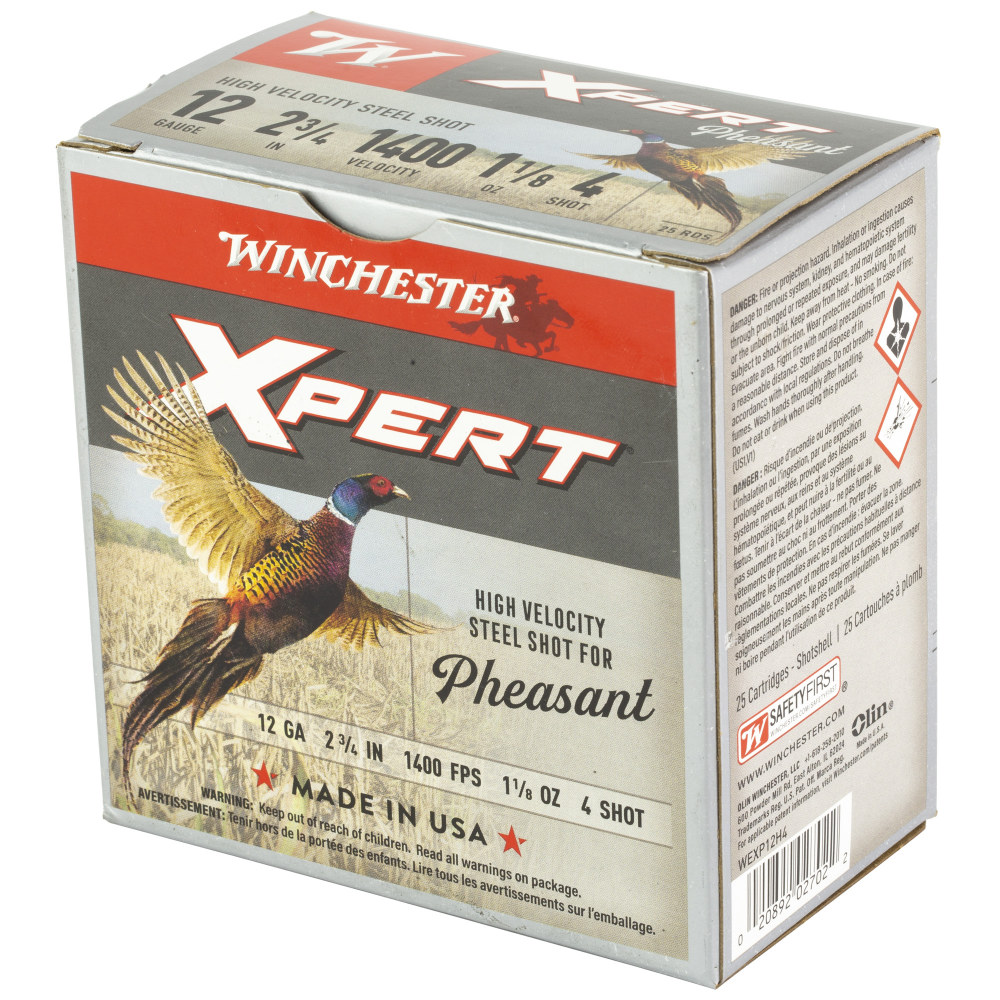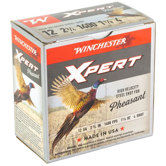 Winchester Ammunition Xpert HV Steel Pheasant, 12 Gauge 2.75", #4 Shot, 1 1/8 oz, Steel Shot, 25 Rounds WEXP12H4
