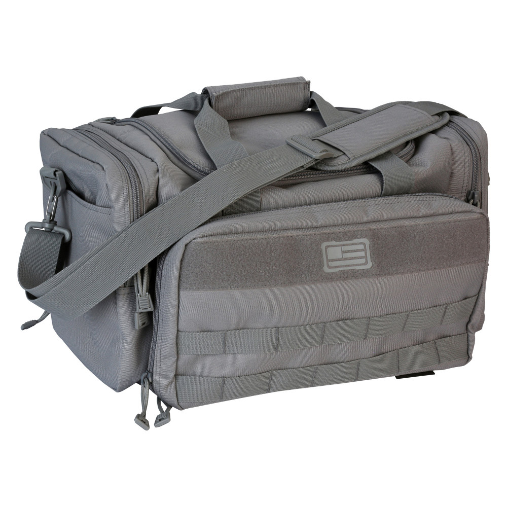 Evolution Outdoor Range Bag, Polyester, MOLLE Webbing, Hook and Loop Panel, Large Main Compartment with Multiple Exterior Zipper Compartments, Gray 51314-EV