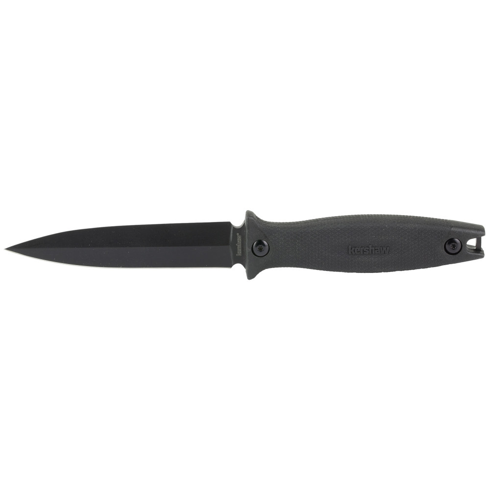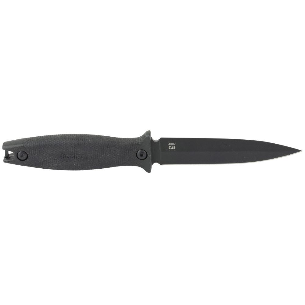 Kershaw Secret Agent, 4.4" Fixed Blade Knife, Spear Point, Plain Edge, SS Black-Oxide Finish, Rubberized Co-molded Handle, Molded dual-carry sheath with Clip 4007