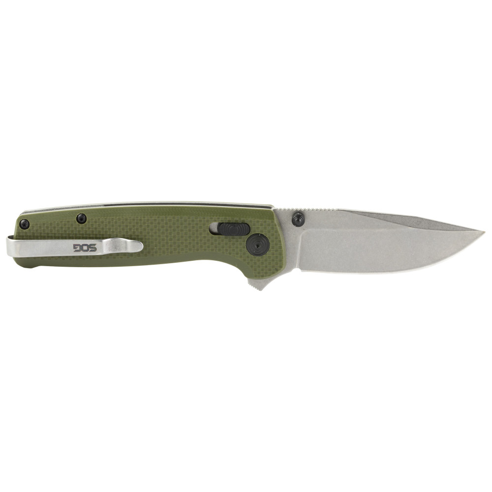 SOG Knives & Tools Terminus XR, Folding Knife, 2.95" Straight Clip Point, Olive Drab Green G10 Handle, D2 Steel, Stonewashed Finish, Silver SOG-TM1022-CP