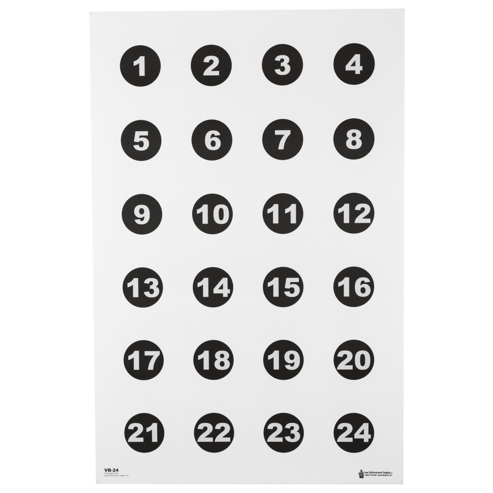 Action Target VB-24, Command Training Target, Military 3" Numbered Circles, Numbered 1 Thru 24, Black, 23"x35", 100 Per Box VB-24-100