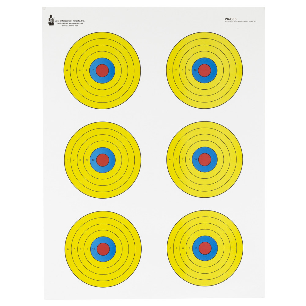 Action Target Action Target, PR-BE6, High Visibility Fluorescent Yellow, 6 Bull's-Eye Target, Blue/Red/Yellow, 17.5"x23", 100 Per Box PR-BE6-100