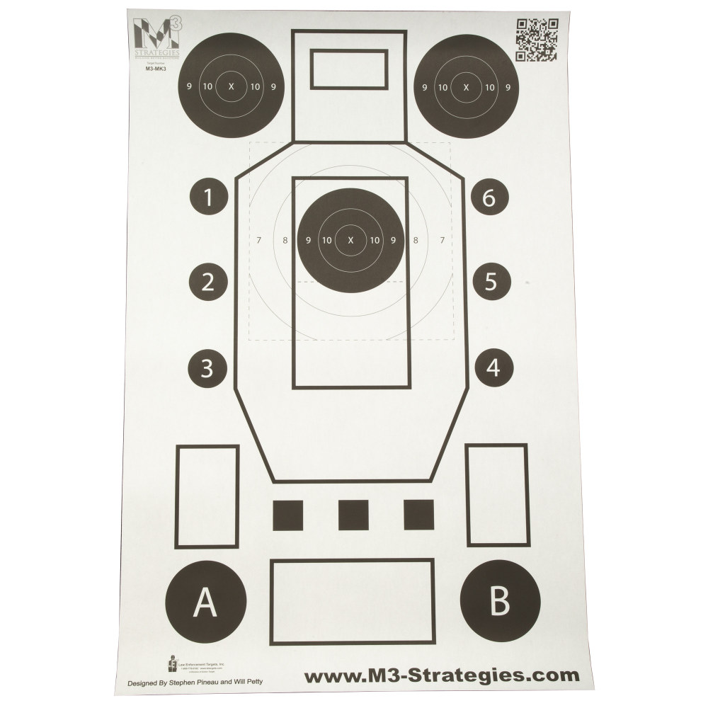 Action Target M3 Strategies Multi-Purpose V3, Training Target, Black and White, 23" x 35", 100 Per Box M3-MK3-100