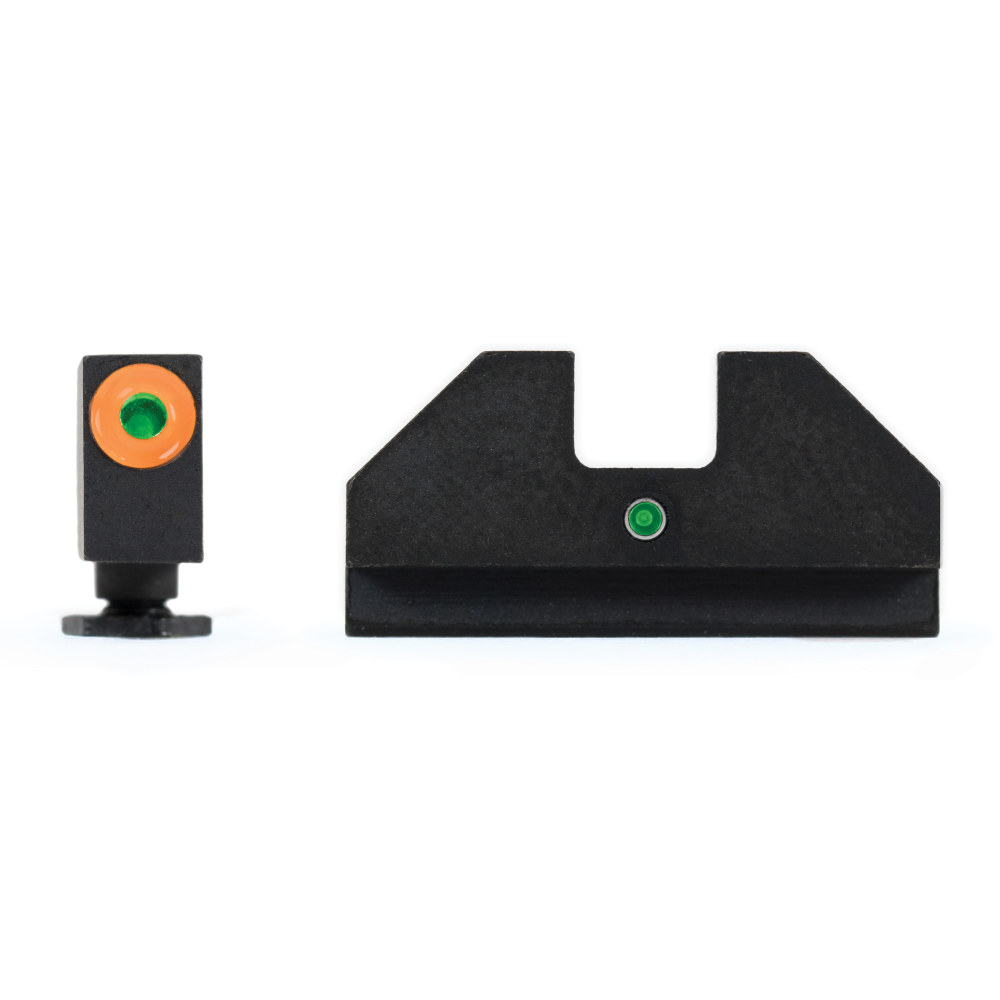 XS Sights F8 Night Sight, Fits Glock Models 17/19/22/23/24/26/27/31/32/33/34/35/36/38/, Taurus G3c/GX4/New Production G3, Walther PDP, Green with Orange Outline Front, Green Rear, Tritium Front/Rear GL-F006P-5