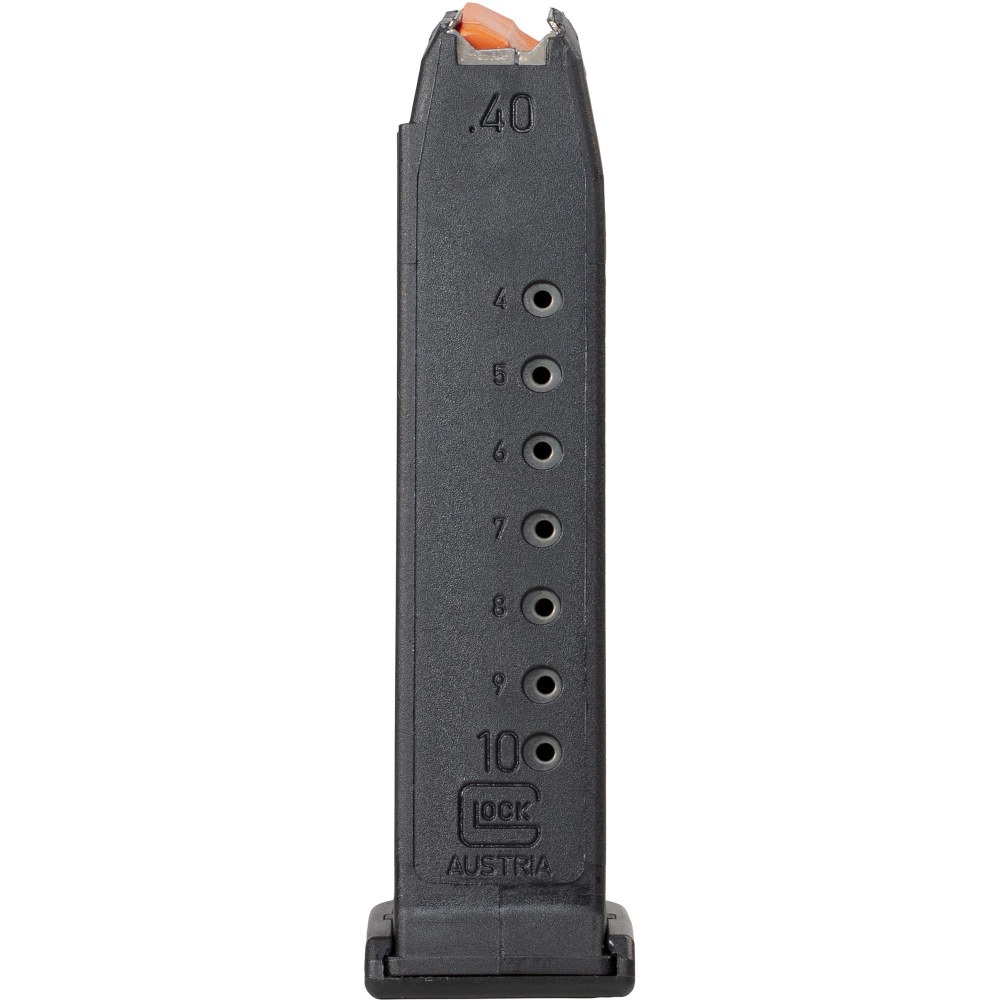 GLOCK OEM Magazine, 40 S&W, 10 Rounds, For GLOCK 23, Cardboard Style Packaging, Polymer, Black, Orange Follower, Gen5 65282