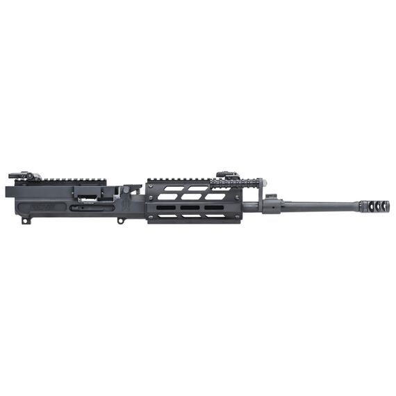FightLite Mission Configurable Rifle Dual-Feed Upper Receiver Assembly, 556NATO, 16.25" Quick-Change Barrel, Threaded 1/2X28, Fits AR-15 Lower Receiver, M-LOK Handguard, Adjustable Sight Set, Manganese Phosphate Finish, Black, Includes Buffer, Spacer, Bolt Catch, Adapter and Compensator MCR-556-DFRM