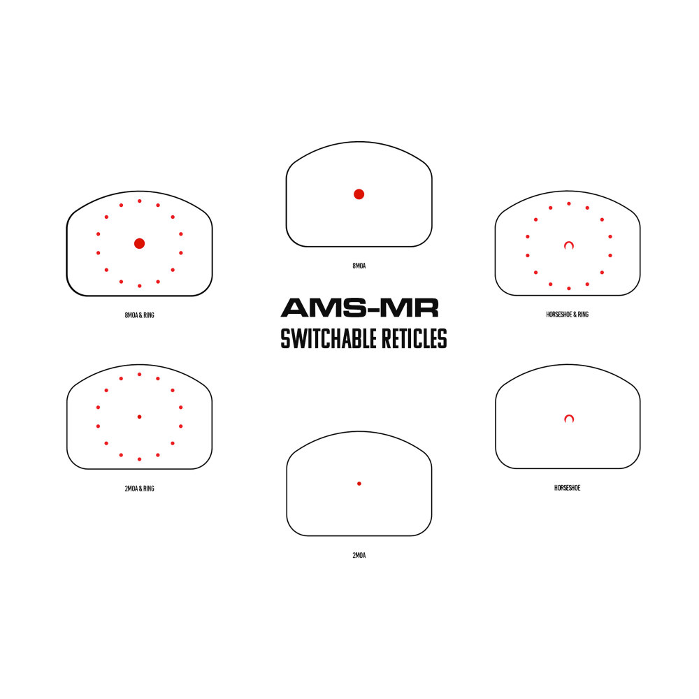 Shield Sights Advanced Mini Sight, Multi Reticle, Red Dot Sight, Non Magnified, Shield Footprint, Multi Reticle Variant, Matte Finish, Black AMS-MR