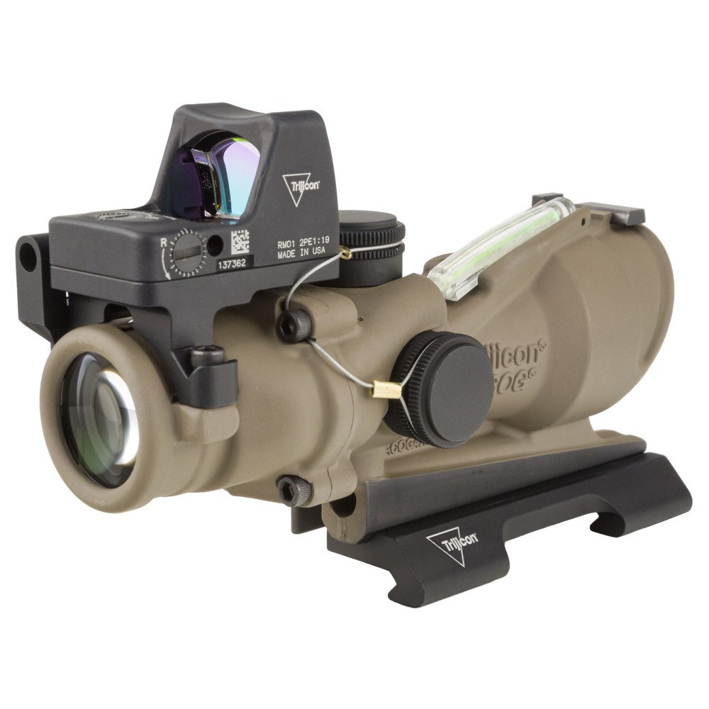 Trijicon ACOG ECOS, 4X32mm Dual Illuminated Green Crosshair 5.56 Reticle, Backup Iron Sights, Quick Release Mount, LED 3.25 MOA Red Dot RMR Type 2, Cerakote Flat Dark Earth Finish TA31-D-100554