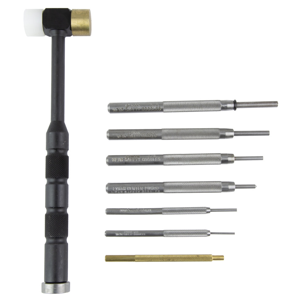 Lyman Products Deluxe Set, Tool, 7 Punches/Hammer Brass 7031298